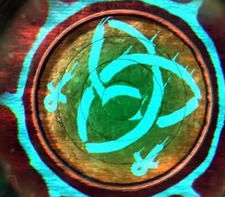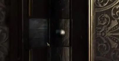7、切换视角,找到柜子侧面有下面这个图案的地方,用金属板转动。