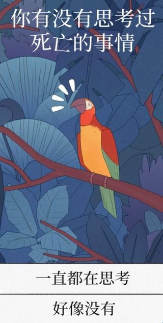 最近刚玩这个游戏,在知道我的鹦鹉朋友在不久后会死去这个事实后,打算和他走完最后的时光,最近在和他演奏音乐,写诗歌,或者发好长时间的呆,但是我的朋友会时不时和我说话,心情也就没有那么沉闷,虽然这只是一个游戏,但是当我对他灌注了真实的情感时,这一切又显得那么感人