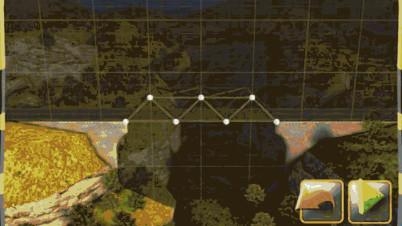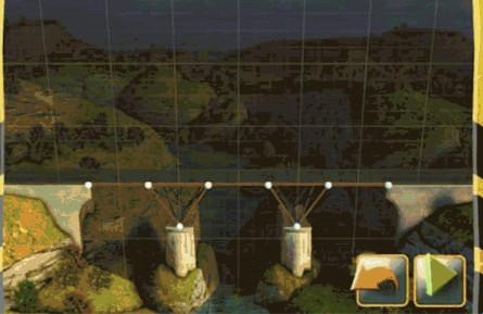 修建的方法和第一关完全类似。只要搭成一个梯形桥样式,并以三角原理固定即可。搭建中唯一要注意的是梯形高度不能太高,高了会导致最后预算不足。