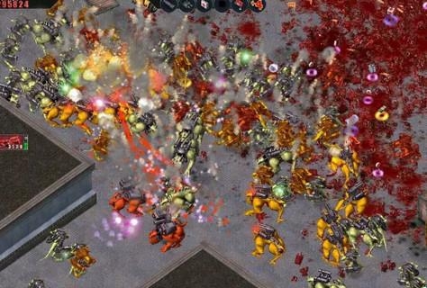 在最后一关中,不要急于打开房子的开关,先在房子前转一转,把怪都引到门前的激光栏边,这时会发射激光的怪会堆在一起“互相残杀”,因为他们的激光是可以伤到同伴的,等它们都死得差不多时再去打开开关,把它们逐一消灭,最后轻松通关!
