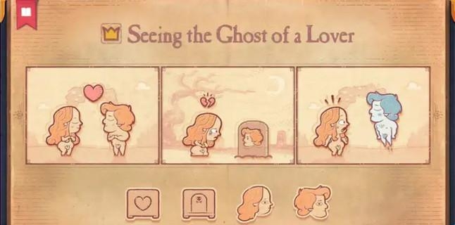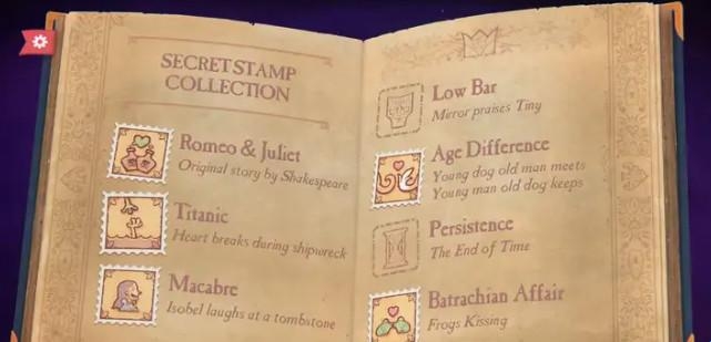 主线的部分关卡还有着特殊要求,除了需要满足题干的任务外,达成额外的条件带来新的挑战。随着主线13章节+终章的结束,游戏还加入了全新的玩法与元素——魔鬼的加入让部分关卡增加了不少变数。你可以让魔鬼伪造墓碑上的死亡,进而引发男子“丧妻”续弦被抓包当成出轨的情况;让女巫自己受到魔药影响变为青蛙;将小船捅穿导致漏水等等。这些全新关卡的加入带来了部分关卡的重玩意义。此外,几十个印章也带来了大量的解谜挑战。你需要在过往关卡中完全放弃任务目标,要根据独特的印章描述自由编故事来收集这些隐藏印章。比如你可以在毒药关中编一起《罗密欧与朱丽叶》,还可以让两个鬼魂互相惊吓,向鬼魂喷火等等。这个系统算得上是游戏自由度的一个高度体现。