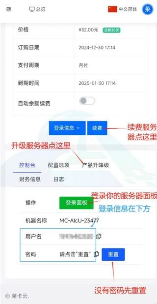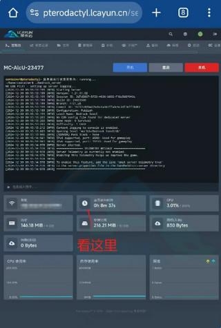 打开服务器面板后,你需要注意服务器是否已经正常开启