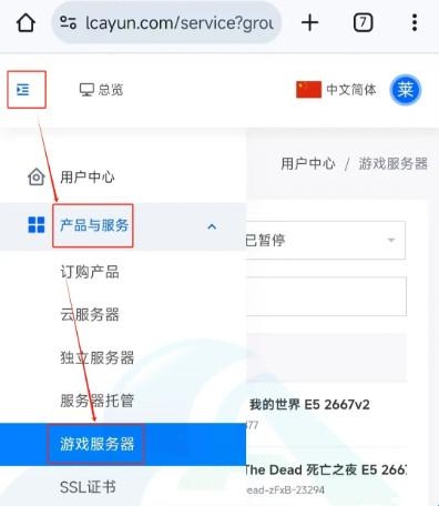 在游戏服务器页面点击你的服务器(点击我的世界字体即可)