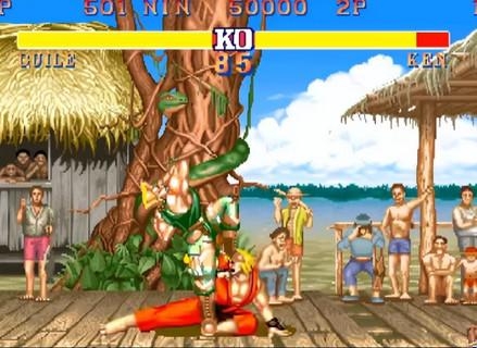 1、《街头霸王2:天下斗士》是《街霸2》的最初版本,只能选择基础的八名格斗家,虽然最后也要挑战四强,但却不能直接选用。印象里最早流传的版本伤害度非常恐怖,一个升龙拳就能打掉对手50%体力,且各人的出招硬直较大,会用的觉得很好用,不懂的就感觉难度太高。还有这个版本中的隆主场朱雀城,孙子兵法中“风林火山”的牌匾是可以破坏的。这个版本最为人所熟知的无疑是古列的“无影投”以及堪称无敌AT领域的“金鸡独立”。