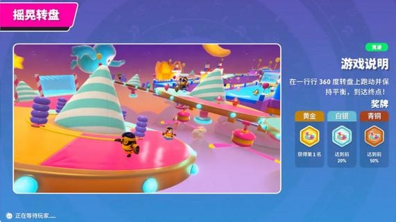 4、摇晃转盘:在一行行360度转盘上跑动并保持平衡,到达终点!