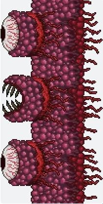 5、血肉墙有长长的血管连接着饿鬼,它们会朝着玩家移动并对玩家造成伤害。随着血肉墙的主体受到伤害,它们会造成更大的伤害并更能抵抗攻击。当受到足够伤害后,它们会脱离并高速飞向玩家。饿鬼(生命:672,伤害:160,防御:16)脱离血肉墙的饿鬼(生命:224,伤害:160,防御:6)
