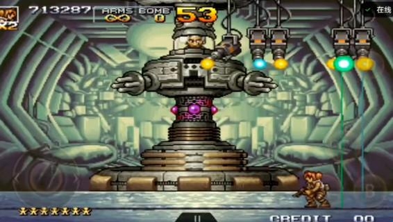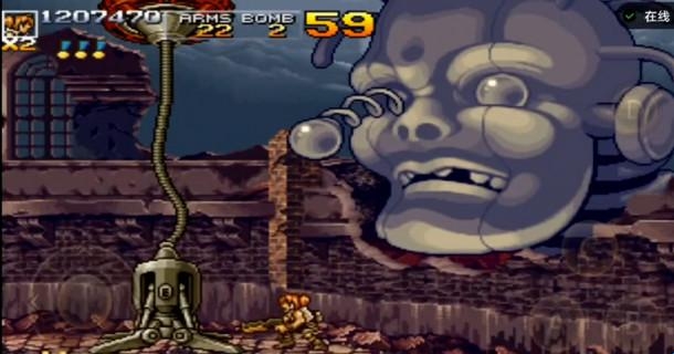 如果你在BOSS之前或BOSS处不幸没了坦克的话,你先不要慌(这里假如你没有打掉一层!)。等BOSS出现后立刻跳到木架子上,然后站在木架子上打中间那层(注意不要打爆了),如果有导弹枪的话可以把拿火炮筒的士兵干掉,等上方没有士兵出现后,你就可以到最下面紧靠着BOSS向上开枪打目前的最顶层,就可以安心地把最顶层打掉,然后就可以跳到木架子上打掉目前的中间那层,这样就会再掉下二层来,用同样的方法打目前的中间这层,等打的快爆后立刻停手,去打目前的最底层,等到二层都快爆后,立刻将二层一起干掉,为了安全最好先让中间那层先爆掉。这样最后一层就掉下来了,如果最底层还未打掉的话,就要快速的用手雷炸掉,然后站在最左边向BOSS攻击,四级难度下可以跳到木架子上向BOSS攻击,要注意上面下来的伞弹,伞弹下来后要及时解决。