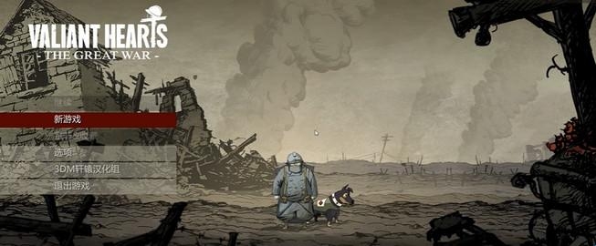 1、游戏开始,一个年迈的士兵和一只狗静静立在屏幕中央,他们周围硝烟弥漫,处处断壁残垣,士兵微低着头粗重地呼吸,似乎早已奠定了这款游戏的悲情基调。