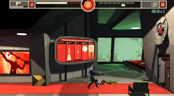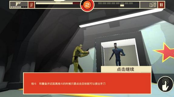 5、既然是潜入类,那么多半是从后面悄悄靠近,然后点击屏幕就可以瞬间干掉敌人!灵活利用地形,藏到2层或者躲在掩体后面,等敌人视线转到另一边的时候,给他致命一击吧!