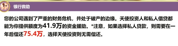 经济危机:首次破产(贷款的成就完成后把钱全部投入在虚拟现实上,低于二十万资金破产完成这个成就)