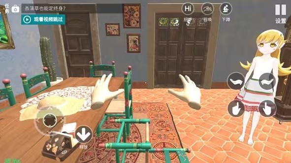 2、跟随角色一起来到客厅的桌子上,坐下。