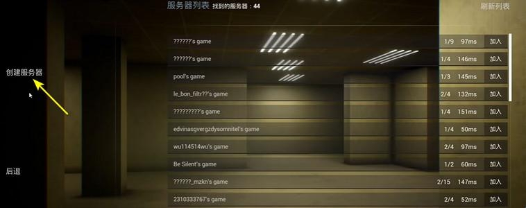 1、进入游戏,点击多人游戏,再点击【创建服务器】;