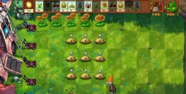 2、使用高于向日葵高度的坚果保护一路,其他路可以都种上“豌豆土豆雷”和“豌豆坚果墙”。