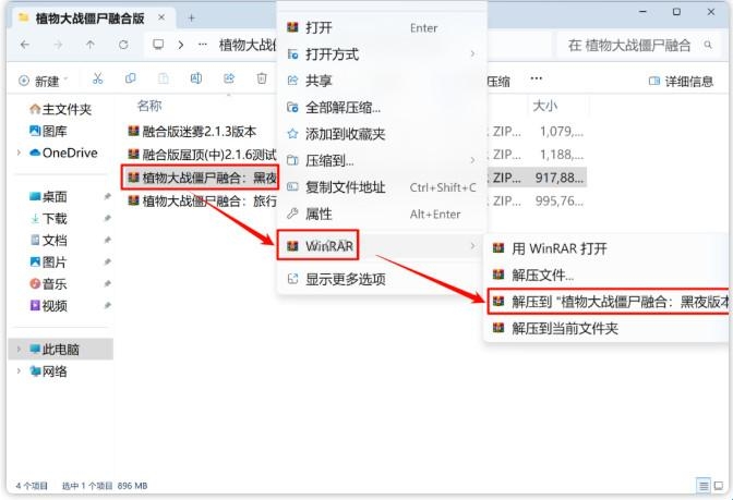 1.右键解压安装包【植物大战僵尸融合版】(其他融合版安装步骤同理)