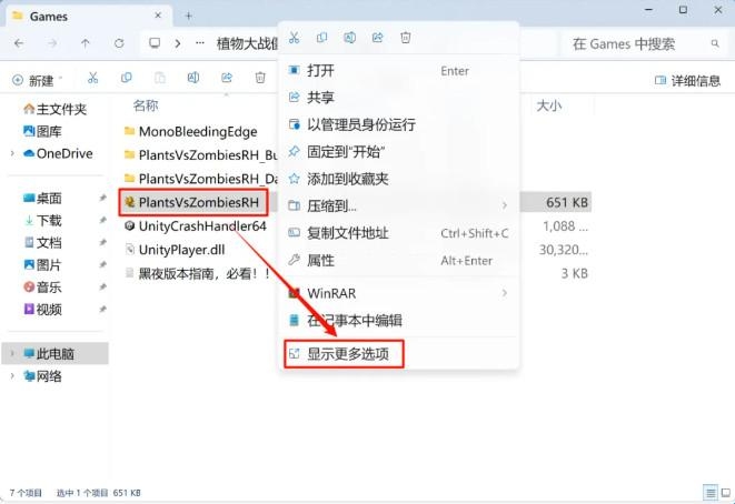 3.选中【PlantsVsZombiesRH】右键【显示更多选项】