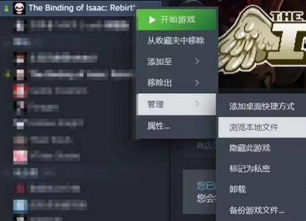 打开steam,在忏悔+beta版本安装好后右键以撒的结合,选择管理→浏览本地文件