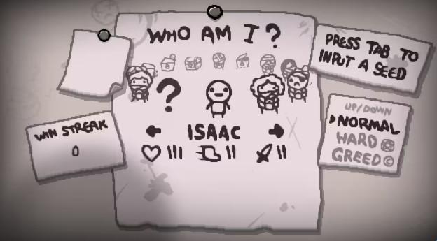 一开始我们只有Isaac(也就是以撒)这个角色可以使用,那我们就先选择普通模式开始游戏(第一次玩最好还是先从普通模式开始,熟悉之后再玩困难模式比较好)。