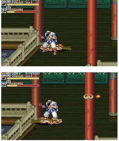 注意事项2:某些时候封版需要忌用一些招式,因为可能引起画面外看不见的敌人出招打进来。最常见的是跳跃(包括飞踢和骑马冲)会引起画面外的弓手射箭和忍者小跳刀扎进来,还有↓,↑+A和↓+B这样的必杀技会引起大部分BOSS在画面外使用危险招式。